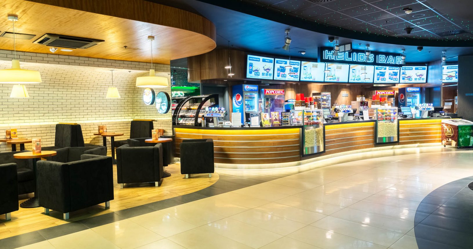 Gości przyciąga znakomita atmosfera towarzysząca wszystkim pokazom filmowym oraz repertuar, w którym każdy Widz znajdzie coś dla siebie. W kinie funkcjonuje także Helios Café, w której można napić się aromatycznej kawy w wielu smakach oraz bar kinowy, który oferuje Widzom świeży popcorn, napoje oraz duży wybór słodyczy.