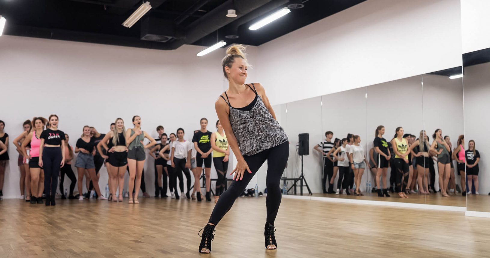 Style: high heels, dancehall, hip hop, choreo, akrobatyka, house, locking, popping, latino, stretching, bachata, breaking